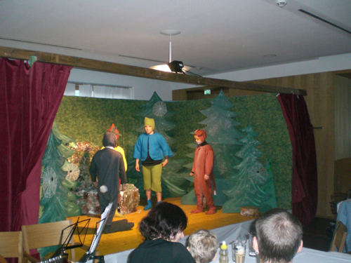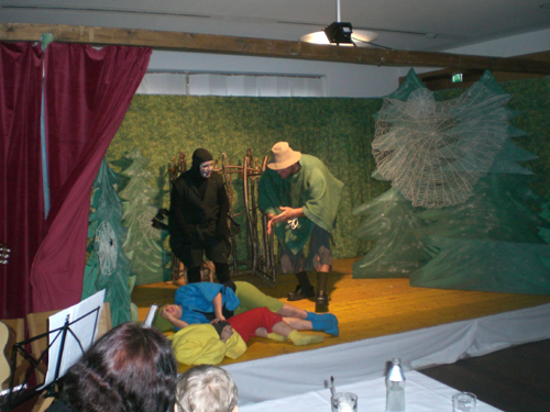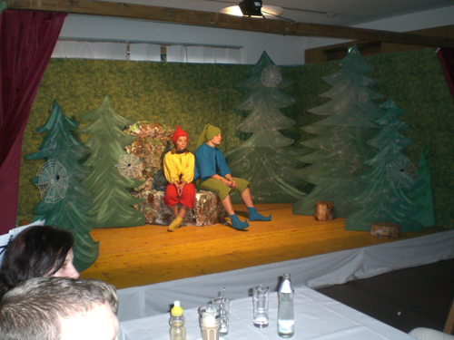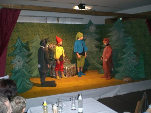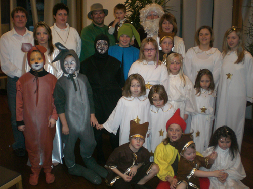 Die Personen und ihre Darsteller: Himpelchen: Michaela Kiechl Pimpelchen: Elias Mühlbacher Der schlaue Fuchs: Sara Gruber Der tollpatschige Hase: Katharina Wöll Der Riese Grausig: Christoph Eder Die Spinne Siebenbein: Bianca Kaufmann Großer Engel: Nicole Derfeser Kleiner Engel: Vanessa Derfeser Christkind: Melanie Gruber Petrus: Daniel Kirchmair Kleine Engel in der